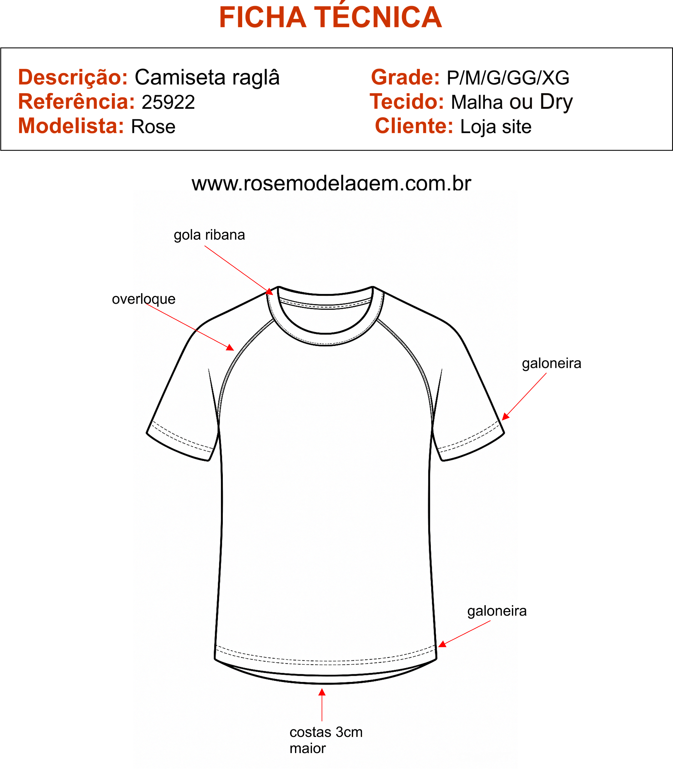 Acompanha o molde: Ficha técnica e tabela de medidas